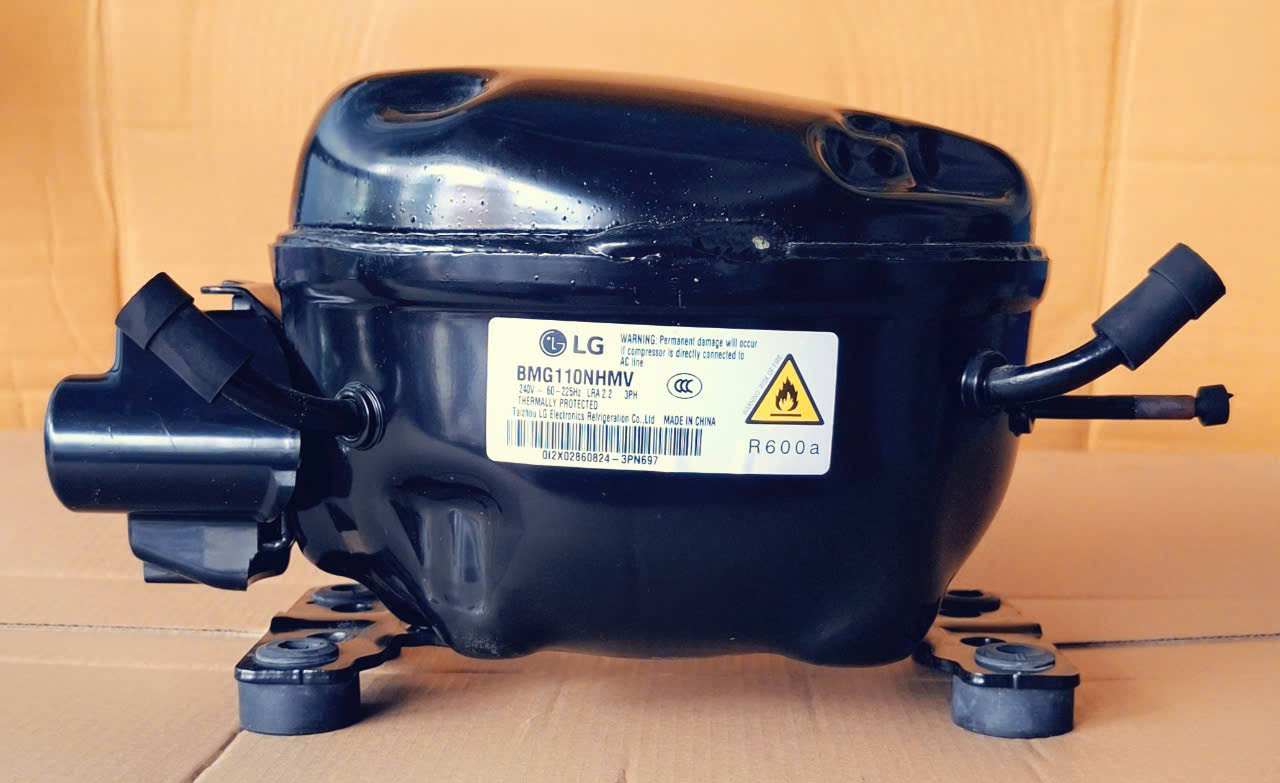 Block LG BMG110NHMV được sử dụng phổ biến trong nhiều dòng tủ mát LG inverter và các thiết bị làm lạnh sử dụng gas R600a.