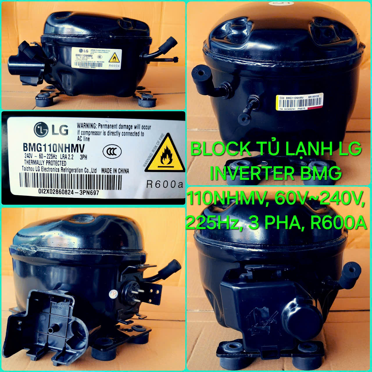 Block tủ mát LG BMG110NHMV inverter R600a – Máy nén tủ mát LG